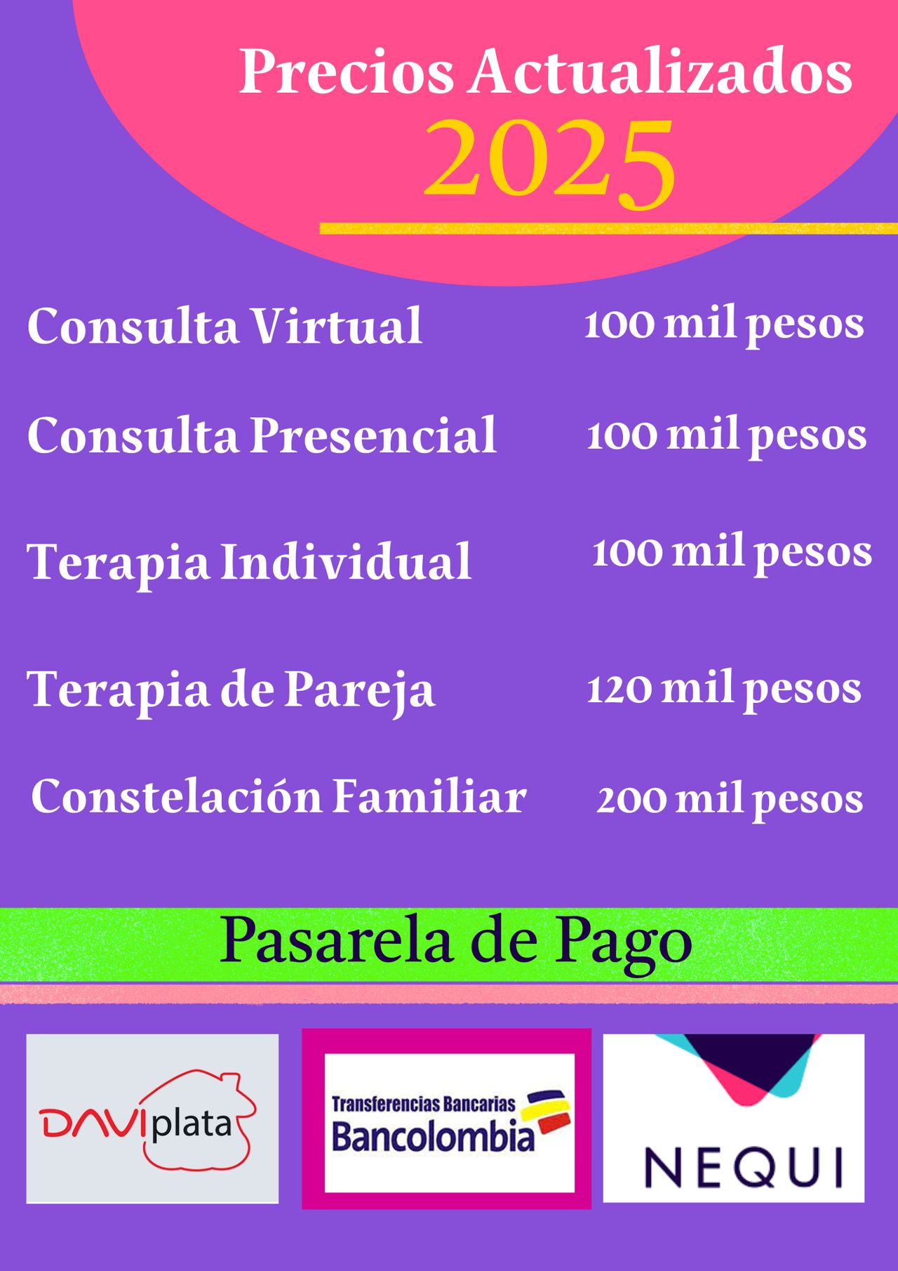 Psicóloga y especialista en Programación Neurolingüística, Constelación Familiar, Coaching, Aromaterapia Egipcia e Hipnosis Clínica y Ericksoniana. A través de diferentes técnicas el paciente puede resolver conflictos afectivos y emocionales mejorando su bienestar y calidad de vida.
